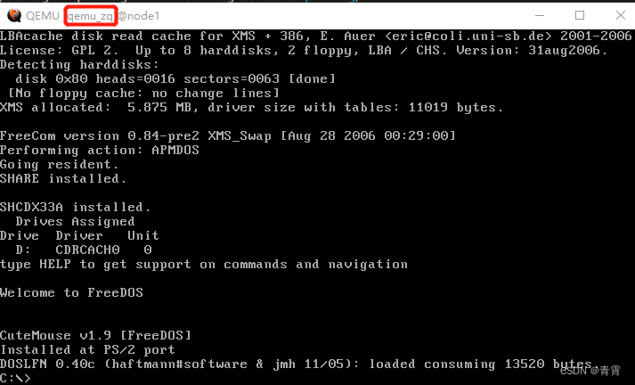 qemu-system-x86_64 -boot order=nc -drive file=FreeDOS.qcow2 # 需得配合-drive file参数,不然启动失败