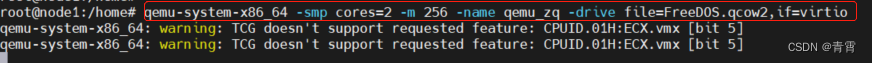 qemu-system-x86_64 -smp cores=2 -m 256 -name qemu_zq -drive file=FreeDOS.qcow2,if=virtio