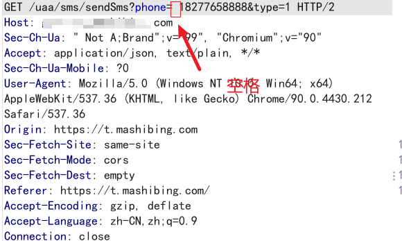 1.利用空格绕过短信条数限制