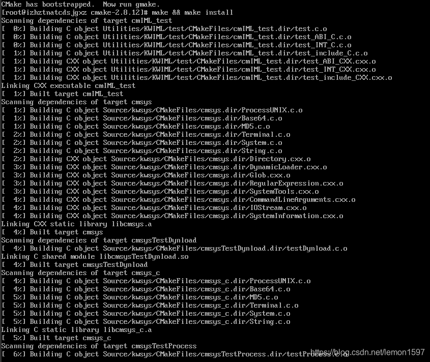 [root@kang cmake-2.8.12]# make && make install