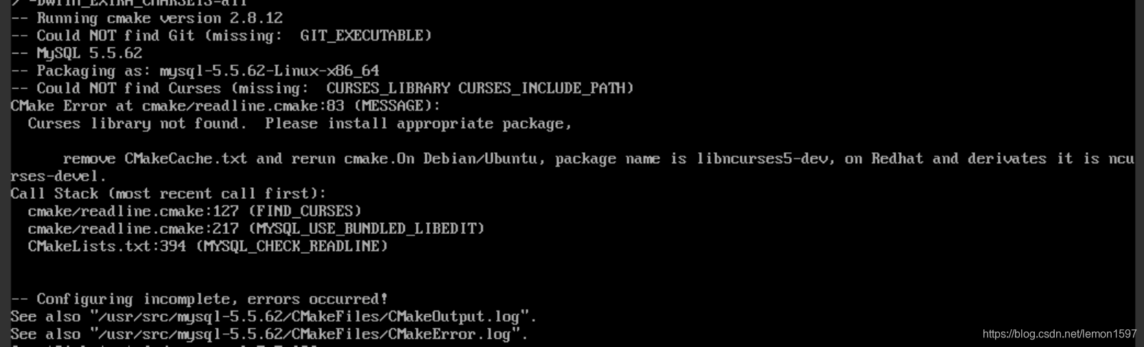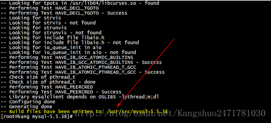 [root@kang mysql-5.5.38]# cmake -DCMAKE_INSTALL_PREFIX=/usr/local/mysql \