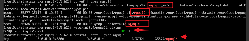 如果有mysqld_safe和mysqld两个进程,说明MySQL服务当前在启动状态;