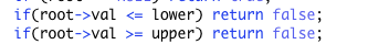 bool rootOK = root->val >= lower_limit && root->val <= upper_limit;