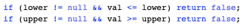 3.为了处理边界样例,不能直接将>=、<=改为>、<后在传递边界值是直接+1、-1.