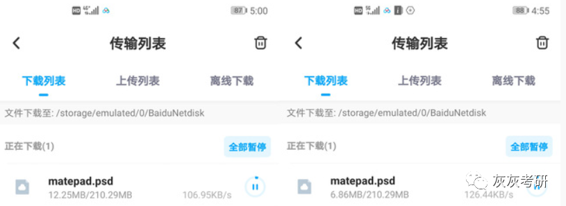 在非会员模式下,使用4G和5G网络均下载一个210MB大小的文件。