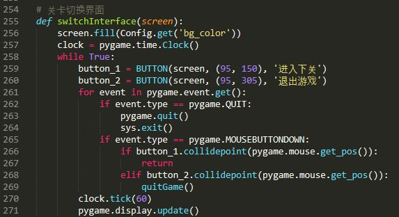 主循环主要负责实例化游戏界面类,并根据按键检测的结果对游戏界面类进行一些操作: