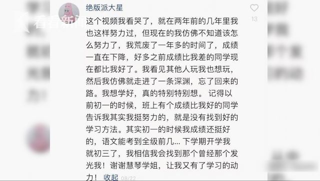有粉丝表示,看了她分享的学习方法之后收益良多,她也成为激励粉丝们学习的动力。也有粉丝分享说看直播用了背英语单词的方法,然后成绩进步特别大,不光拿到了年级第一,还拿了国奖。