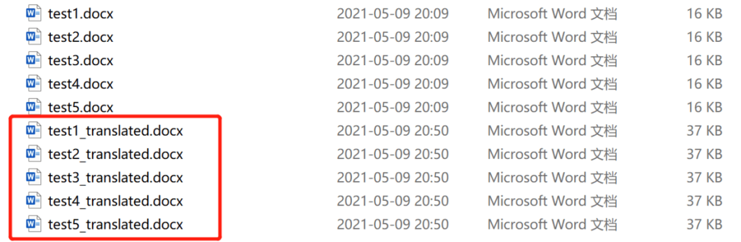 至此,所有文档都被成功翻译,当然这是机器翻译的,具体应用时还需要对关键部分进一步人工调整,不过整体来说还是一次成功的Python办公自动化尝试!