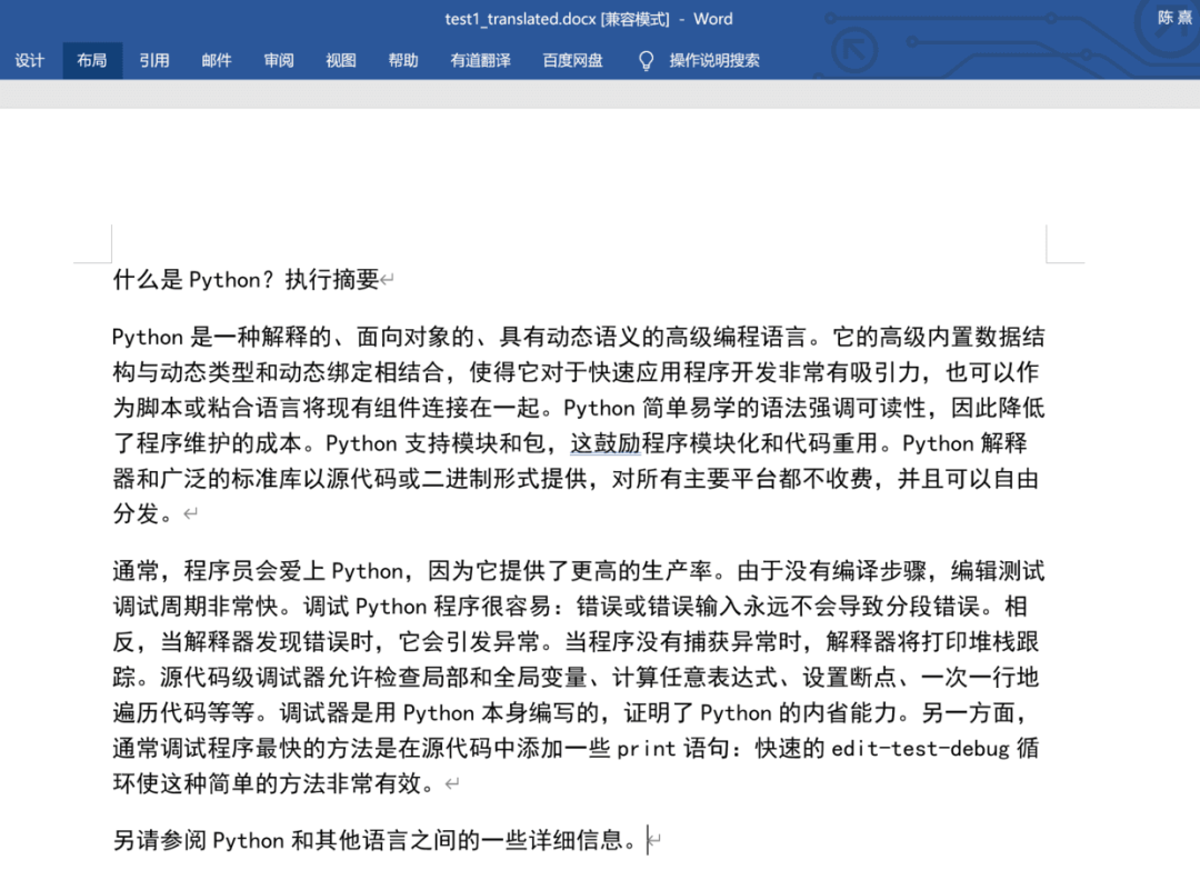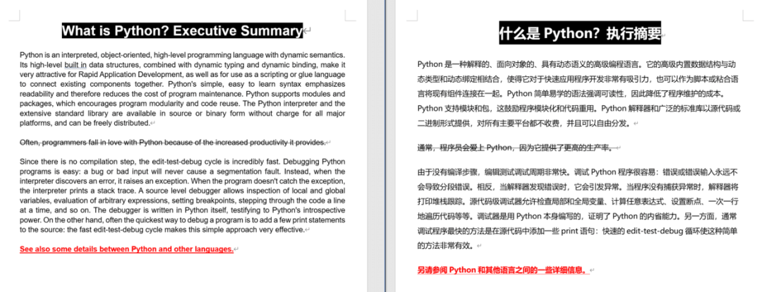 本文将给大家分享一个实用的Python办公自动化脚本 「利用Python批量翻译英文Word文档并保留格式」,最终效果甚至比部分收费的软件还要好!先来看看具体的工作内容。