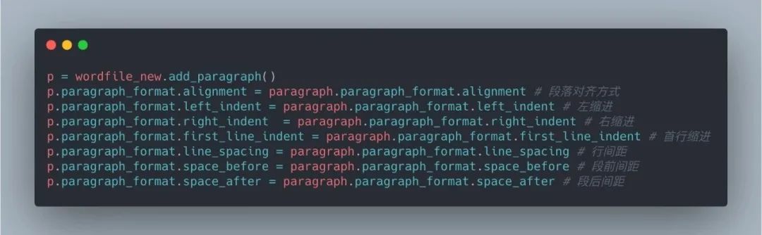 段落样式包括对齐、缩进、间距等等,原文档中采取了段后缩进,标题是居中对齐。这些设置在变量传递中能够很好完成。如果原文档中没有设置的变量值为 None