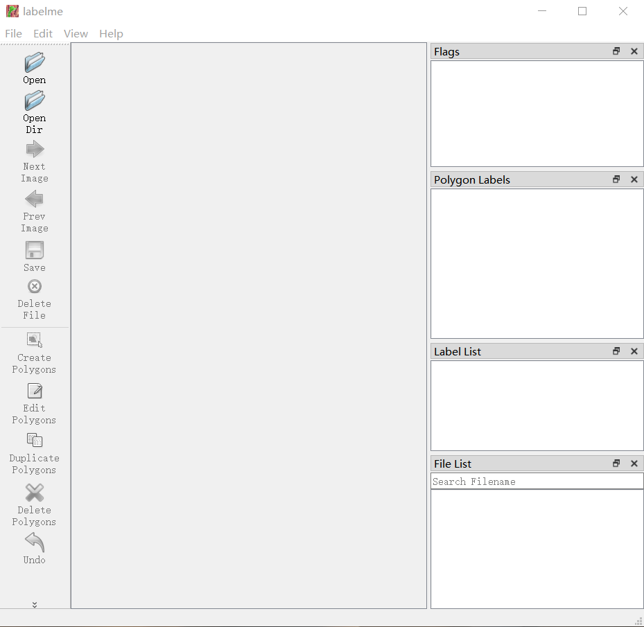 安装完成后,在命令行执行以下命令,就会出现labelme的界面