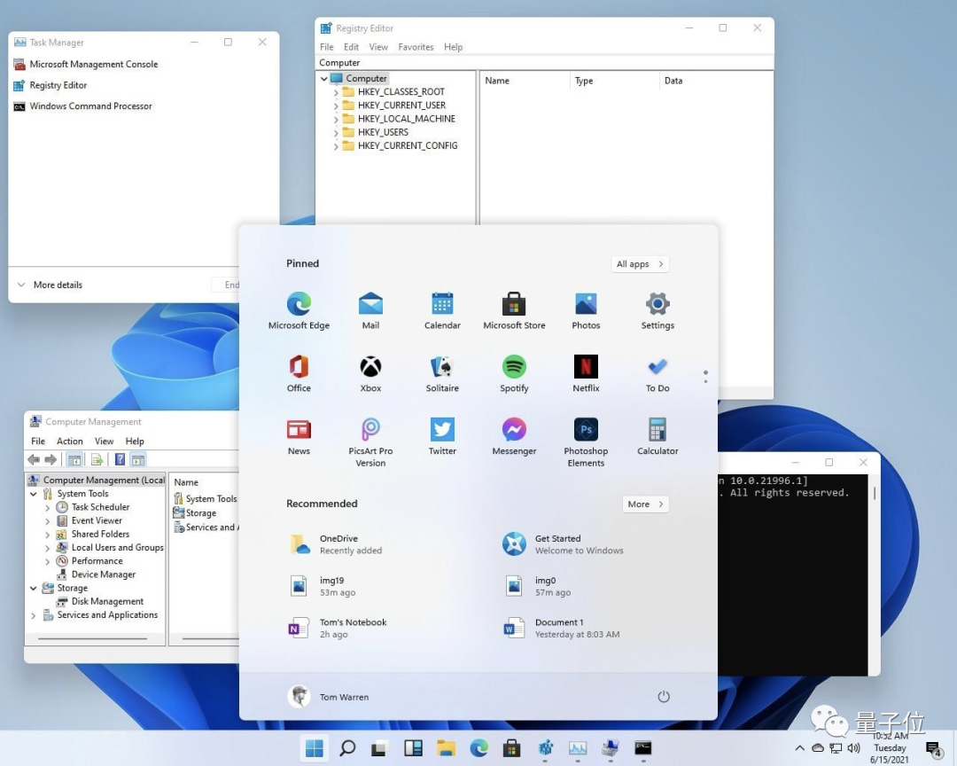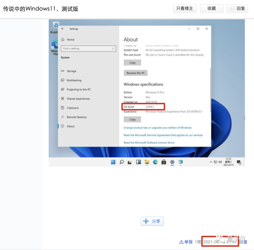 这次Windows11泄露版的版本号是21996.1,最早的截图来自百度贴吧Windows11吧。