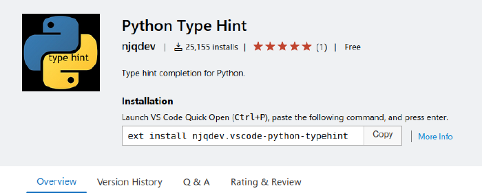 Python Type Hint 下载地址:https://marketplace.visualstudio.com/items?itemName=njqdev.vscode-python-typehint