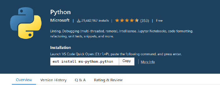 Python 扩展下载地址:https://marketplace.visualstudio.com/items?itemName=ms-python.python