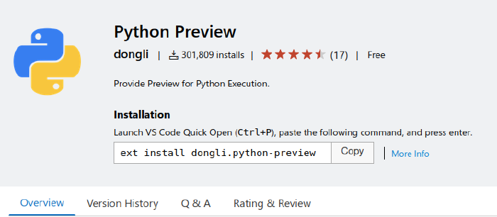 Python Preview 下载地址:https://marketplace.visualstudio.com/items?itemName=dongli.python-preview