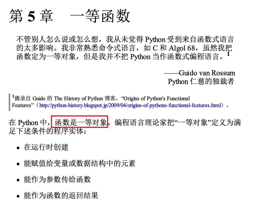 例如在《流畅的Python》一书中,讲到函数的一开始就提出了一个概念,函数是一等对象