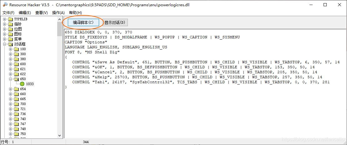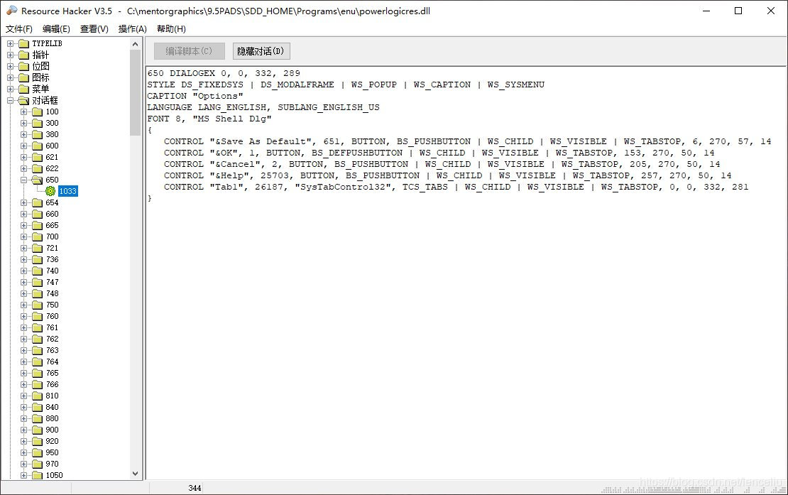 以修改英文版为例,先将powerlogicres.dll备份,使用Resource Hacker打开powerlogicres.dll,找到对话框-650