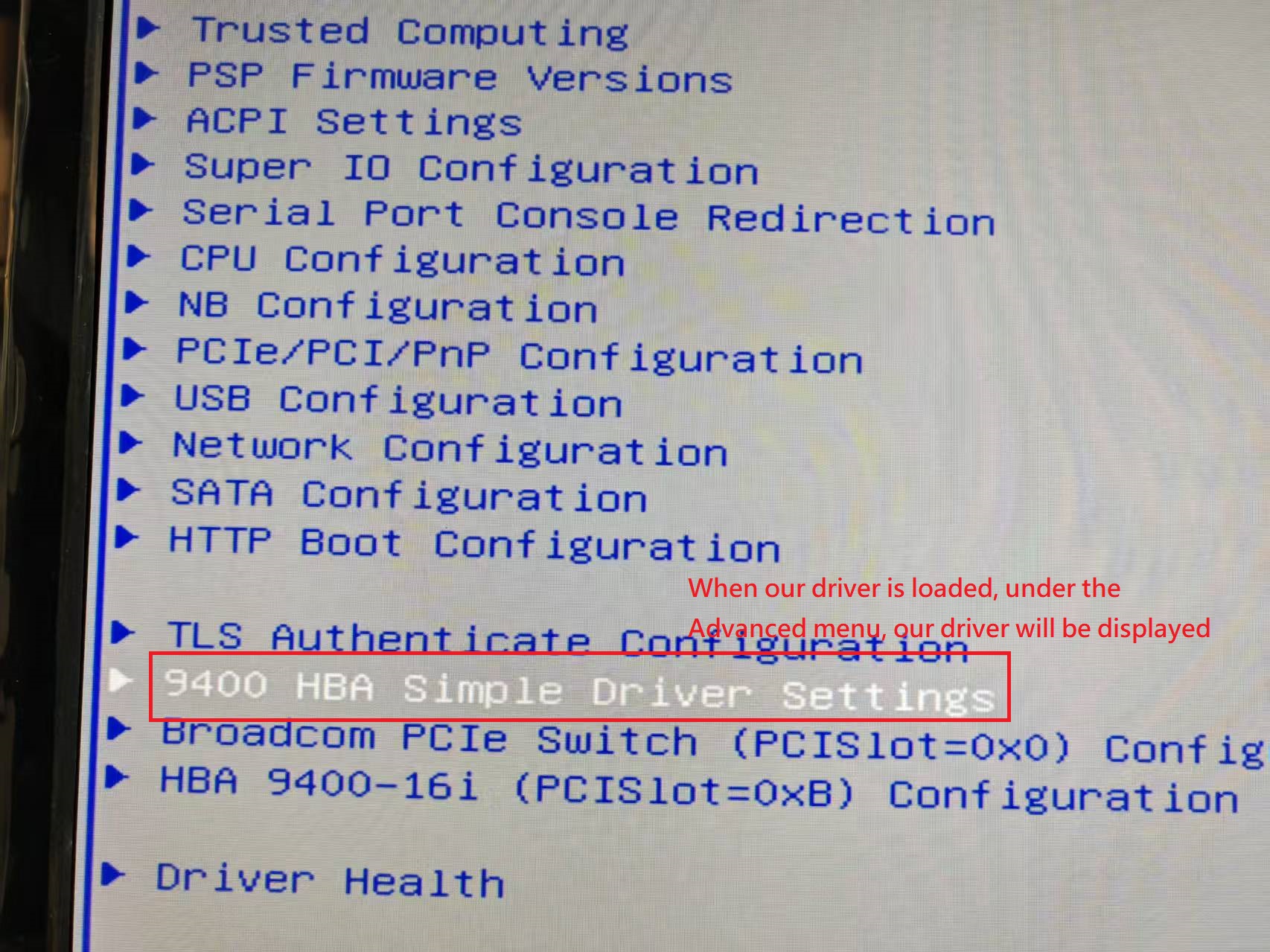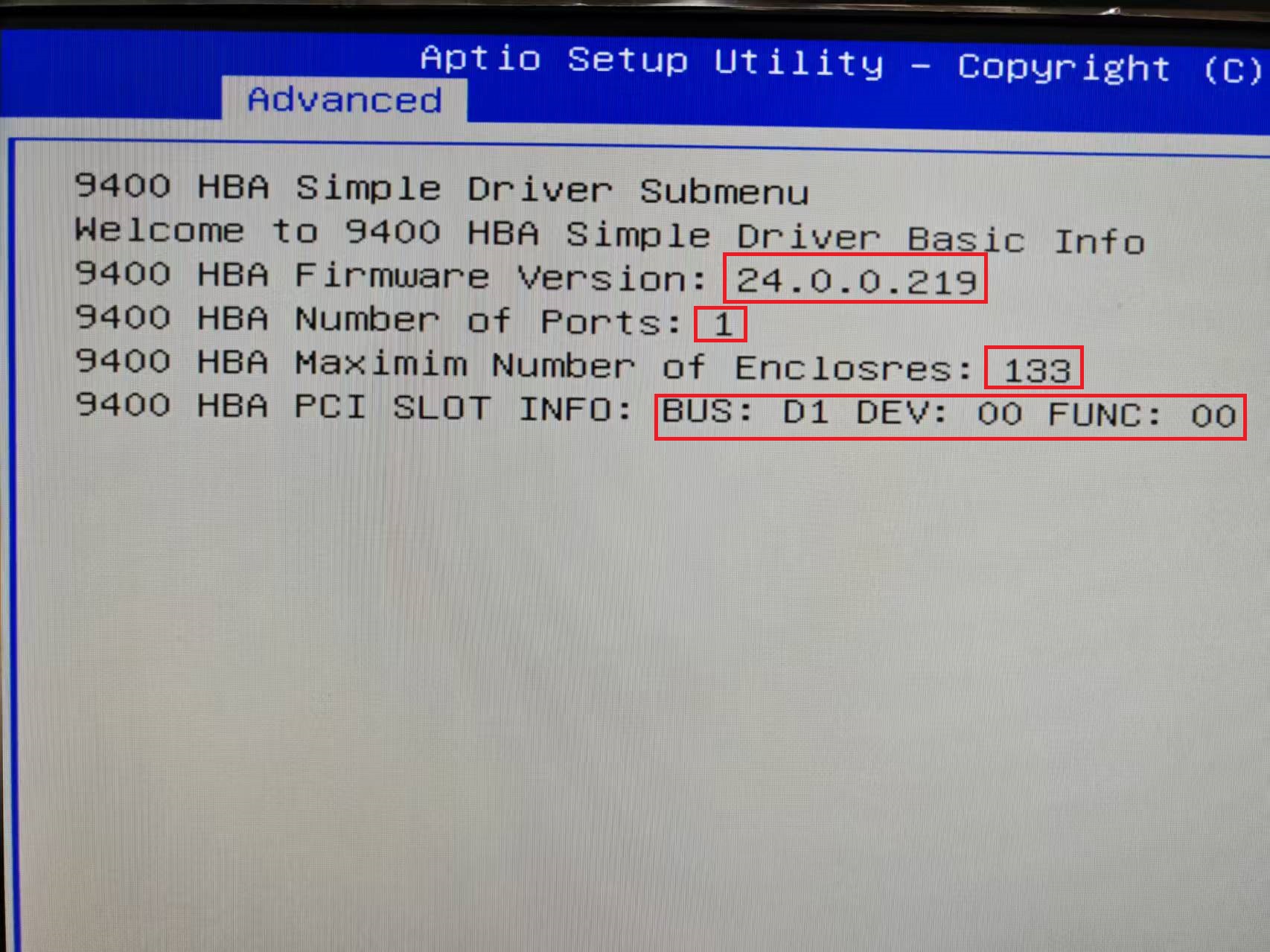 - 用HBA详细信息(固件版本、PCI位置等)填充BIOS设置菜单。