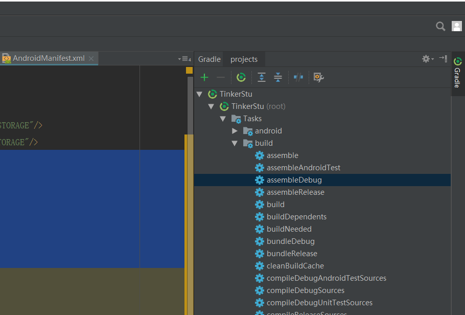 3.2、修改我们的toast内容,把 “我是小二郎” 改成 “我是热修复技术!!” 。之后,如图点击 tinkerPatchDebug