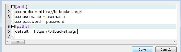 上面paths分支下的default就是我们上面(1)中设置的“源”,如果之前没有设置,随时都可以在这里加入用户名和密码信息。