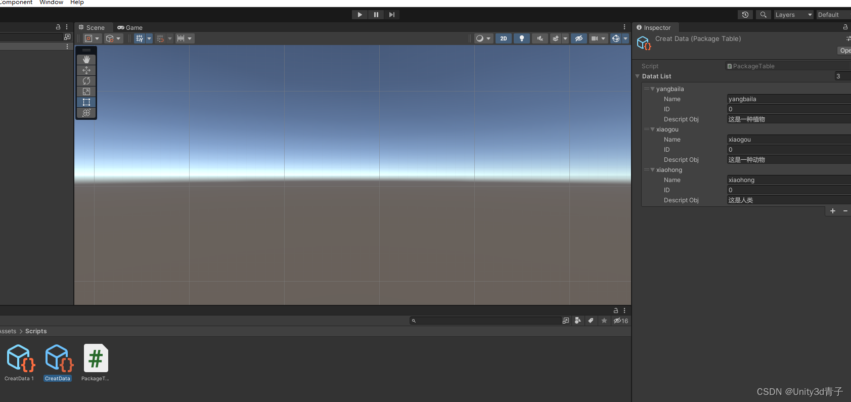 PackageTable` 类继承自 `ScriptableObject`,这是一个 Unity 提供的特殊类,可以在编辑器中创建和管理数据。