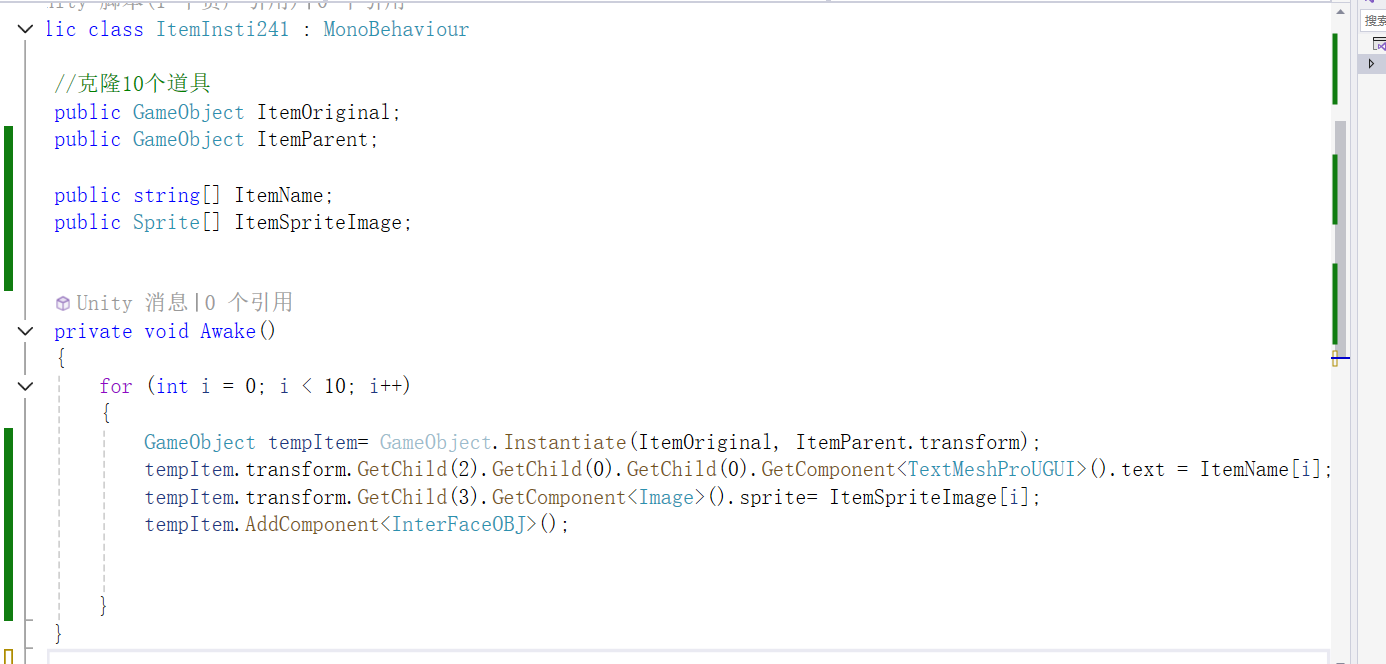 Awake方法中,使用for循环克隆 10 个物品栏模板。 -