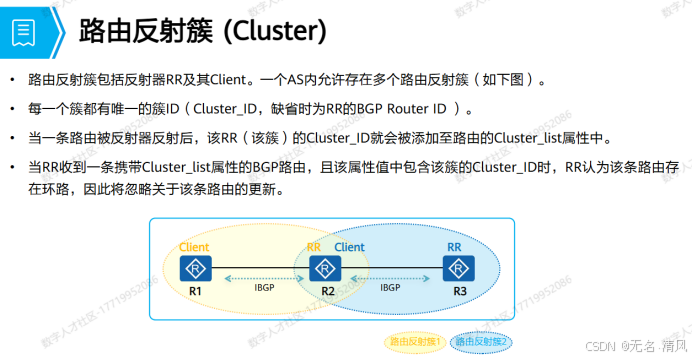 如果路由反射器从自己的客户学习到一条IBGP路由,会反射给除了该客户以外的所有客户。