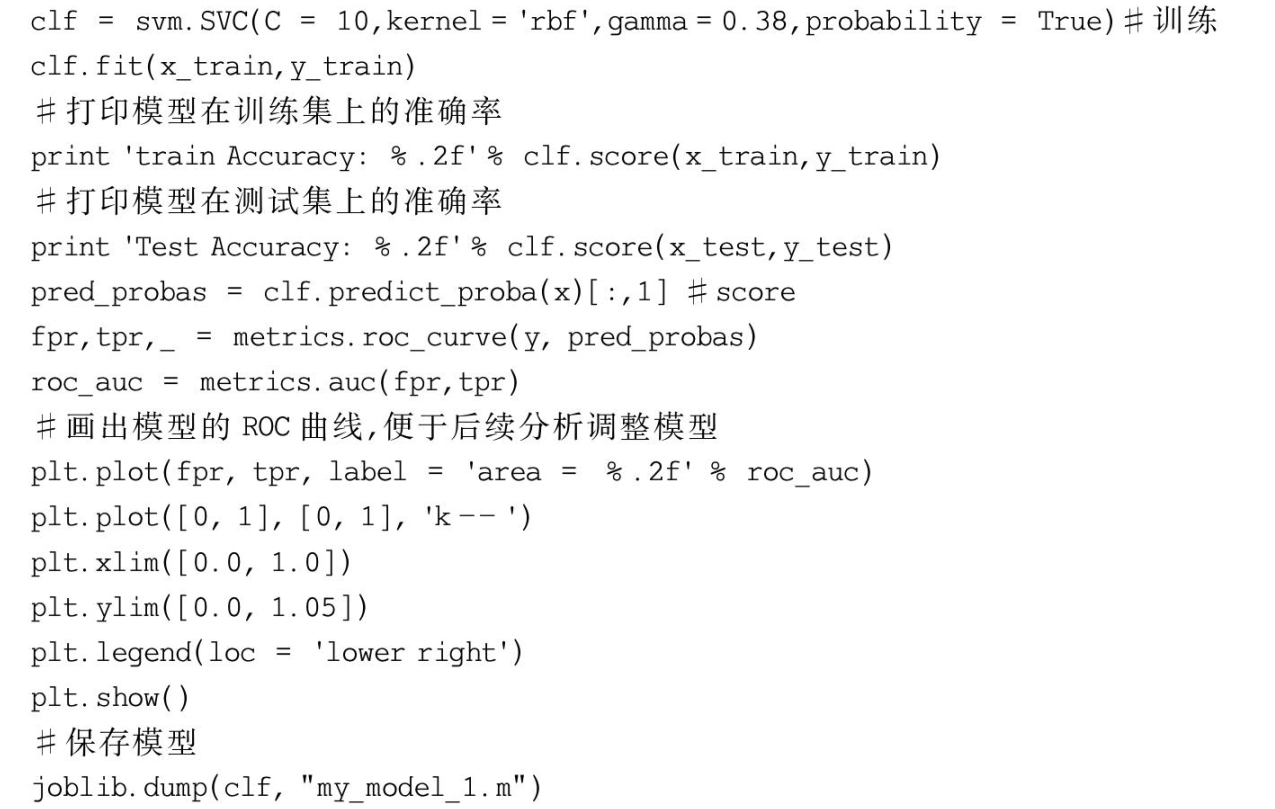 通过训练集训练数据得出模型,使模型进行情感分类。这里,使用训练集和测试集来拟合并保存模型。