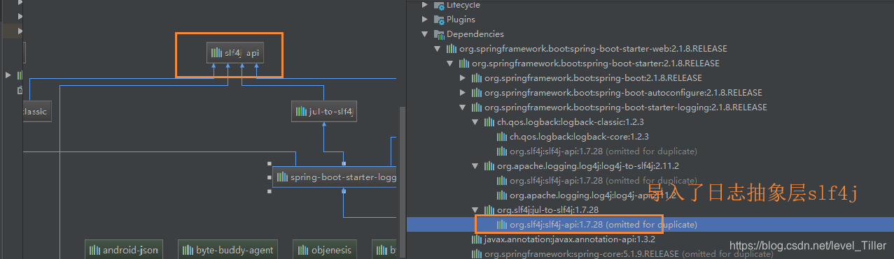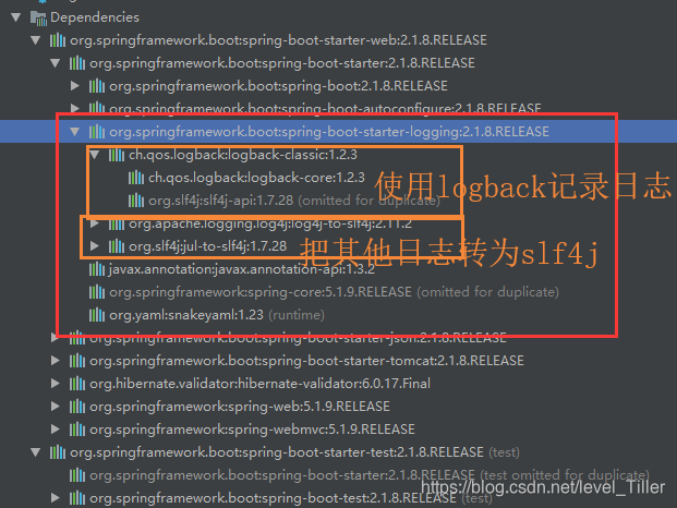 springboot能自动适配所有的日志,而且底层使用slf4j+logback的方式记录日志,引入其他框架的时候,只需要把这个框架依赖的日志框架排除掉。