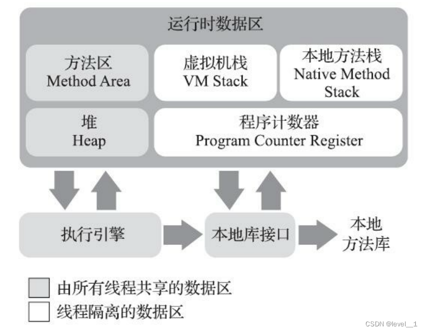 方法区:线程共享的,用于存储已被JVM加载的类型信息,编译后的代码。运行时常量池也是方法区的一部分,这部分主要用于存储Class文件的常量池(包含各种字面量和符号引用)