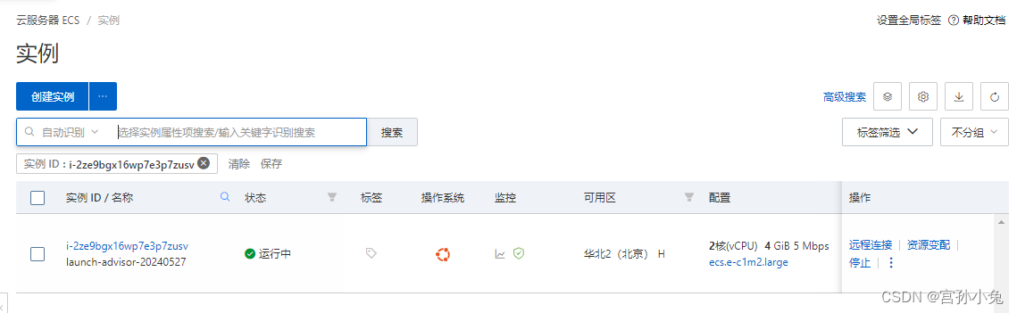 点击,ECS实例清单中的实例名称,进入实例详情。