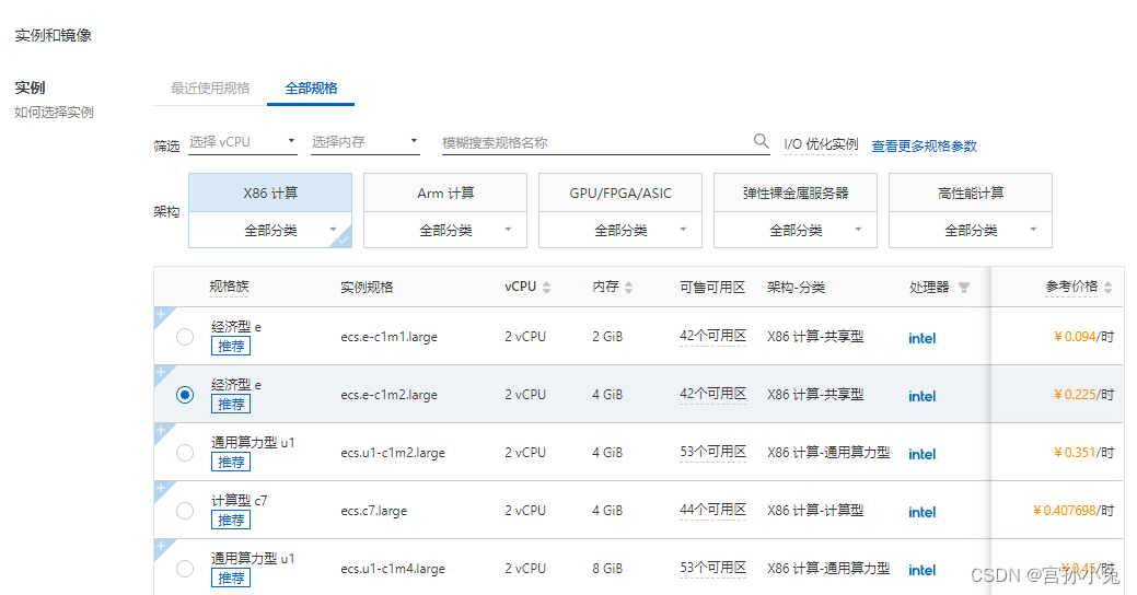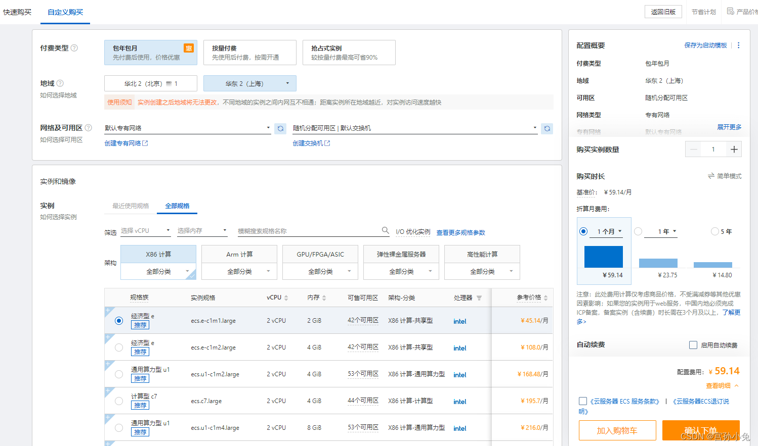 实例规格按需选择即可,配置越高,价格越高。除特殊需要,一般都使用X86架构。