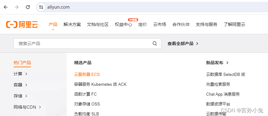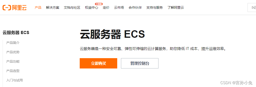 点击“管理控制台”,即可看到刚才购买的ECS服务器。