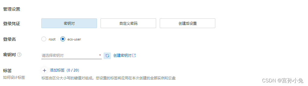 密钥管理中,支持密钥对、自定义密码和创建后设置。根据需要选择即可。