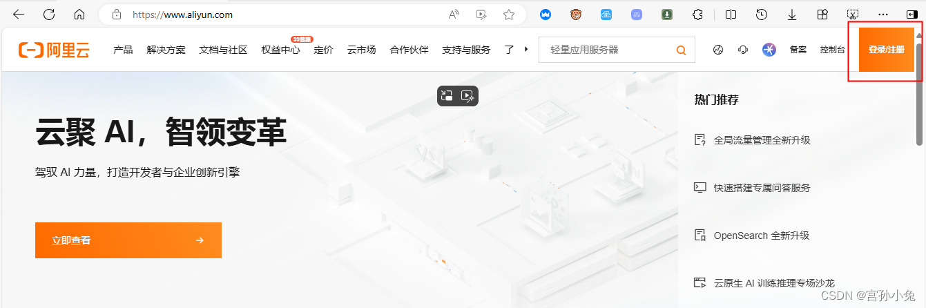 登录公有云官网,右上角”登录/注册“,按引导注册或登录即可。