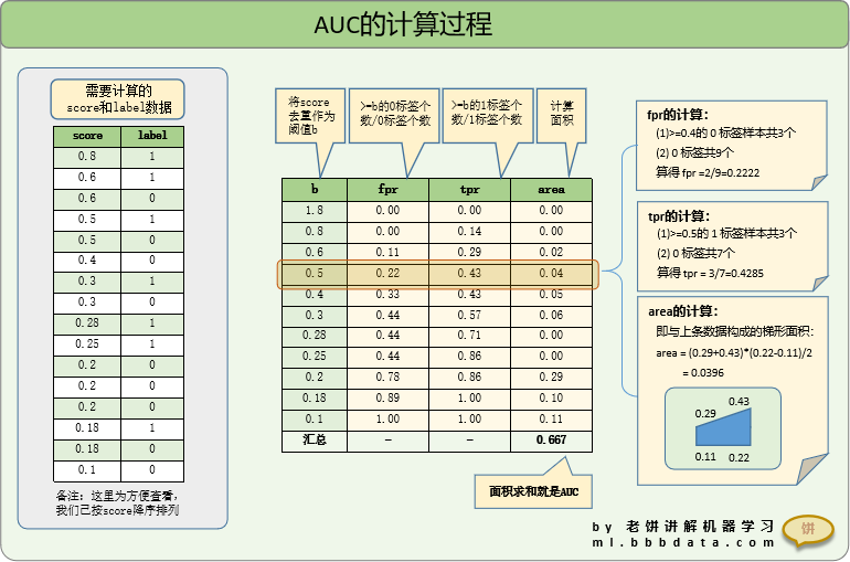 然后讲解sklearn包计算AUC的详细流程,并用代码自行实现AUC的计算