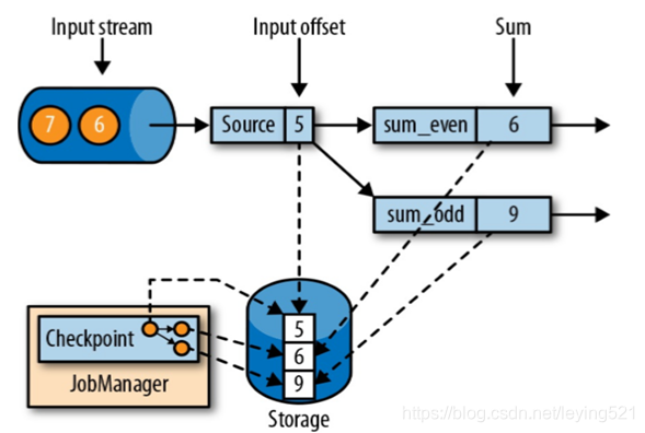 2)有状态流应用的一致检查点,其实就是:所有任务的状态,在某个时间点的一份拷贝(一份快照)。而这个时间点,应该是所有任务都恰好处理完一个相同的输入数据的时候;