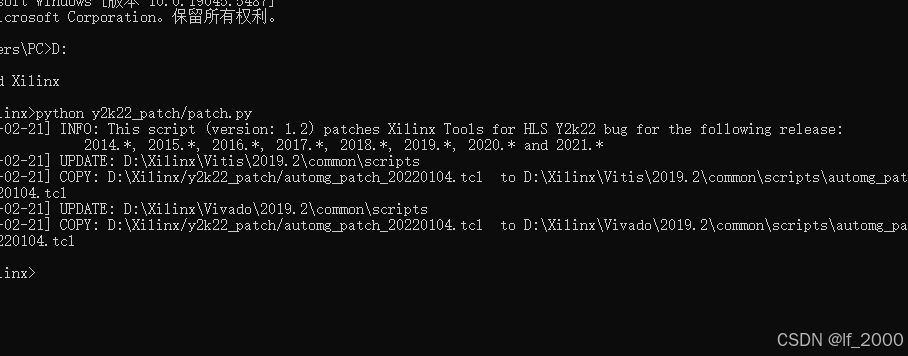 6.输入指令python y2k22_patch/patch.py,出现后面信息就成功安装补丁了