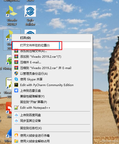 3.将y2k22_patch-1.2.zip下载包进行解压,然后将解压后的文件,安装到自己vivado对应的文件安装位置,如何不记得安装路径,可以右击vivado软件,然后打开文件所在位置