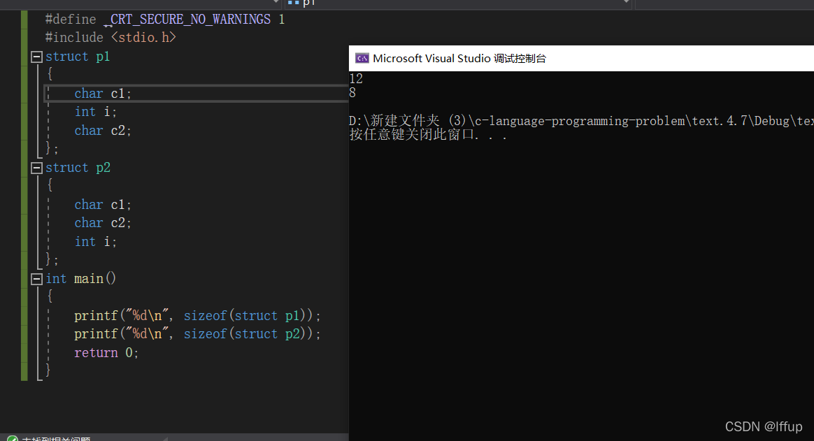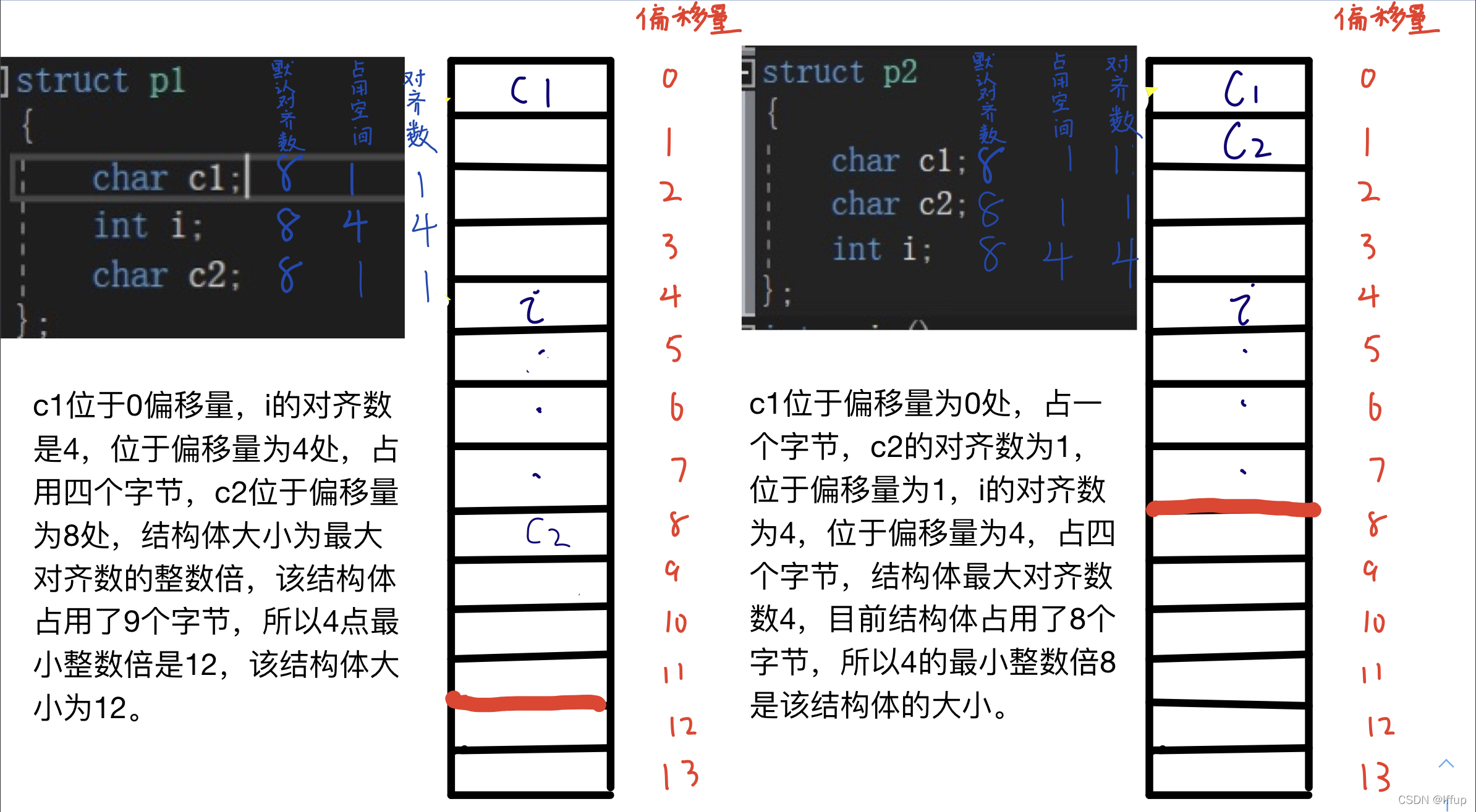 以上代码中,结构体成员变量一样,但是顺序不一样,导致两个结构体所占内存大小不同,这是为什么呢?