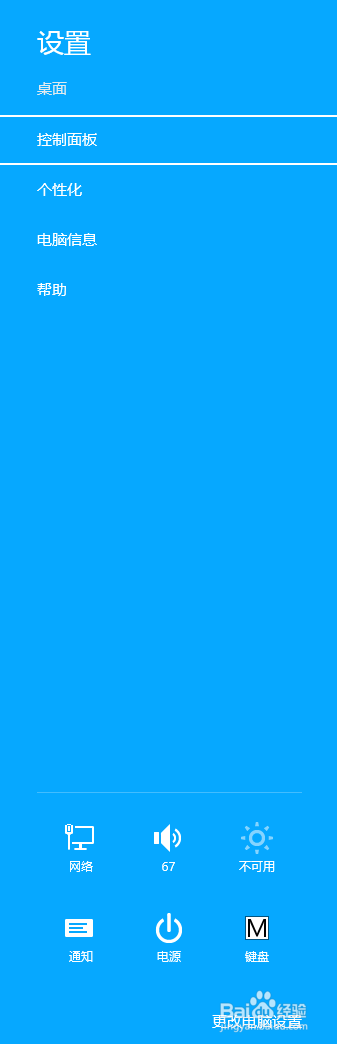 Win+I:打开Charm栏→设置菜单。