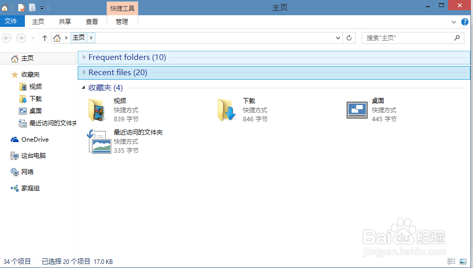 Win+E:调出“主页”窗口。