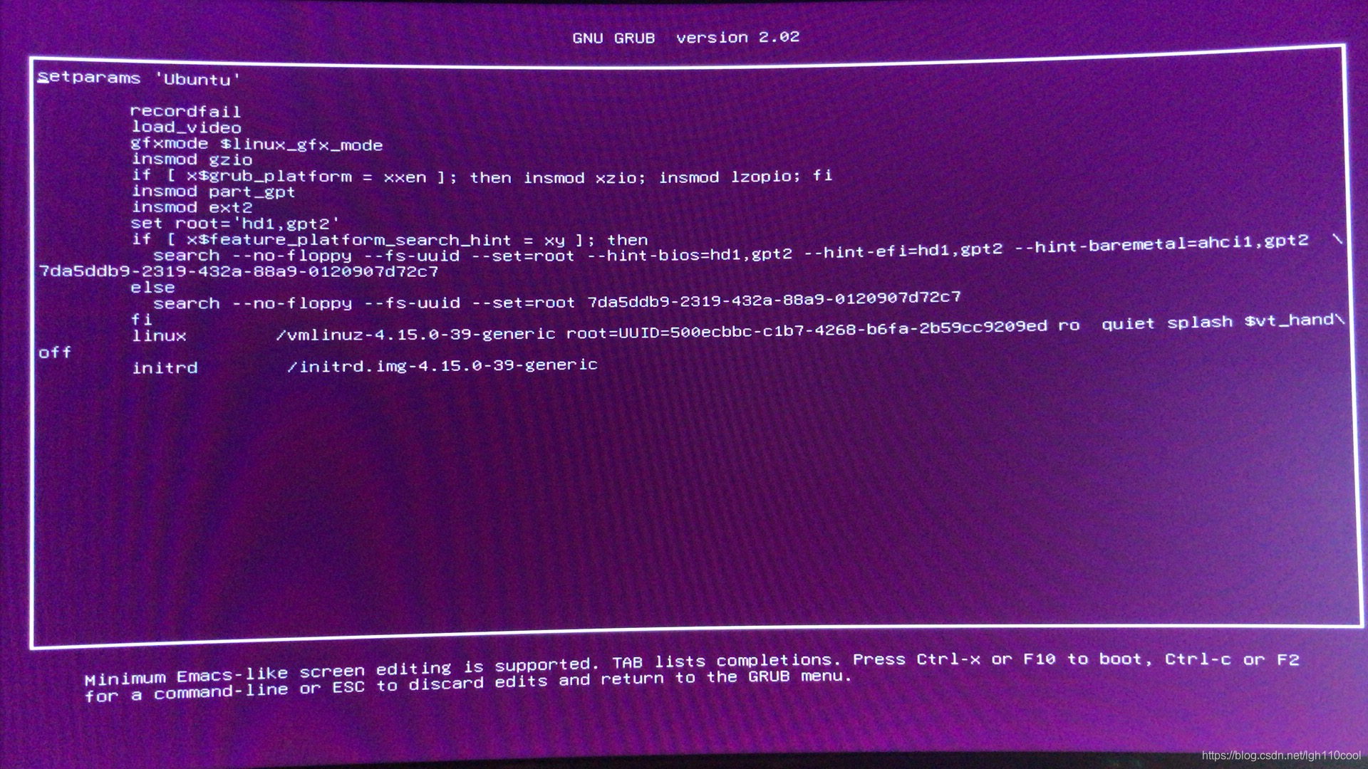 ,选择Ubuntu,然后按键盘上的e键,进入图