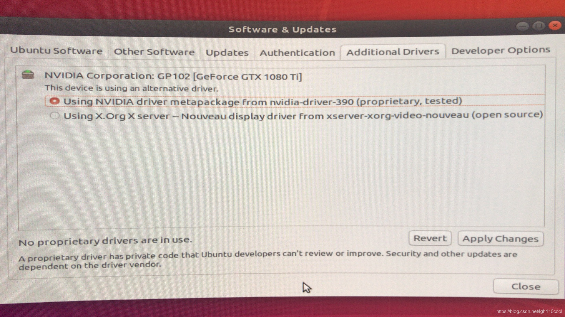 在ubuntu里面更新显卡的驱动就不会报错了,如下图。