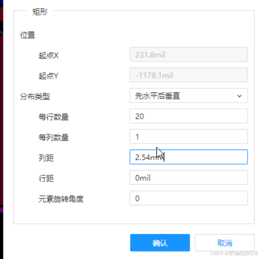 6.***排针位号 必须给丝印的操作。在顶层丝印层--填充区域 --类型 线条 ,画一个矩形,先做一条线,然后水平等距分布,(数据手册查找两个排针之间的行间距)然后做阵列,自己修改丝印号。数。