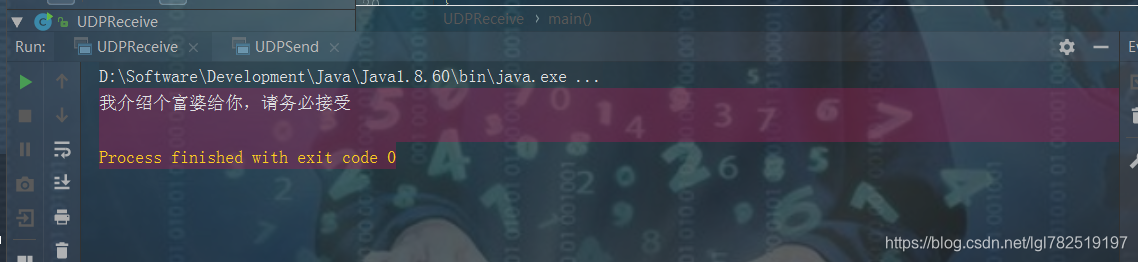 这时我们再运行发送端,发送端运行结束,看到接收端接收到数据输出: