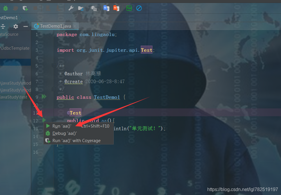 按照平时代码的写法,要想运行一个方法,就得有主方法入口,现在我们就介绍一种方式,不需要写main方法,直接每个方法就能运行测试,这就是所谓的单元测试