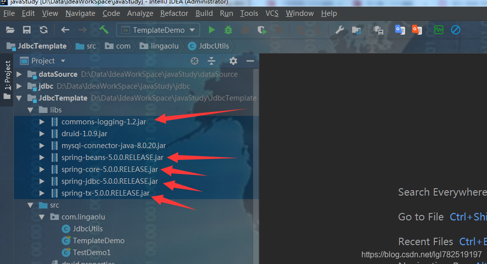 private JdbcTemplate template = new JdbcTemplate(JdbcUtils.getDataSource());