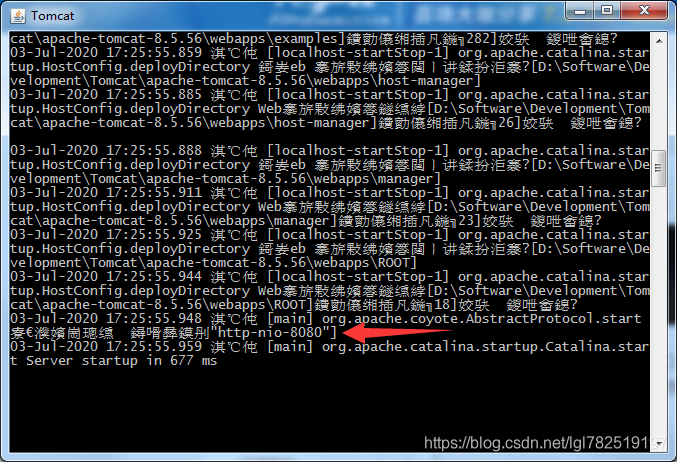 发现了吗,我们启动成功 了,但是输出信息都是乱码,虽然不影响,但是很碍眼,这是因为字节流解码为字符串时,使用了错误的字符集(和编码所用字符集不一致)!