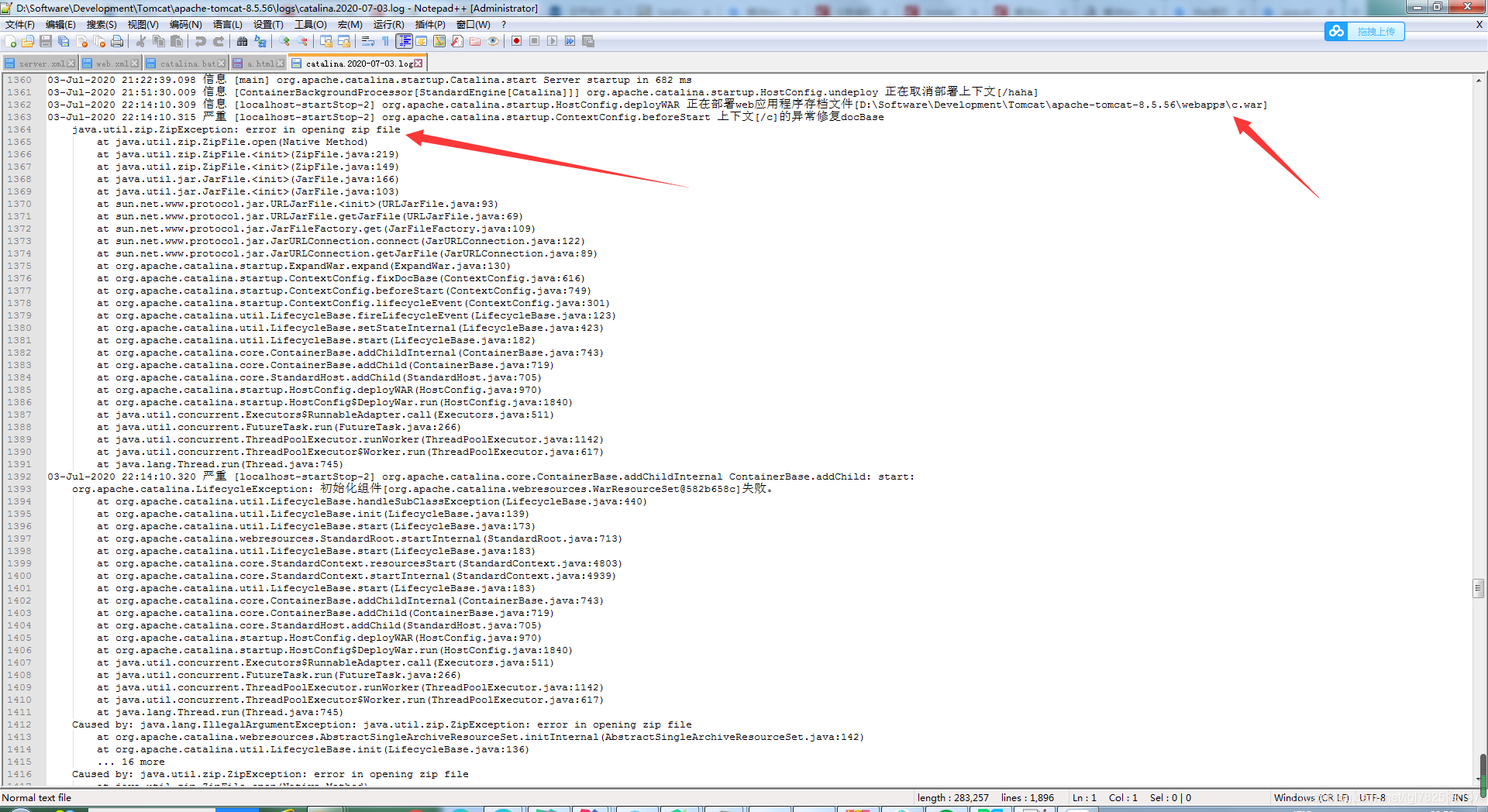 为什么?因为我们的虚拟目录改了啊, 我们的war包是c.war,解压后虚拟目录是c啊,所以重新访问